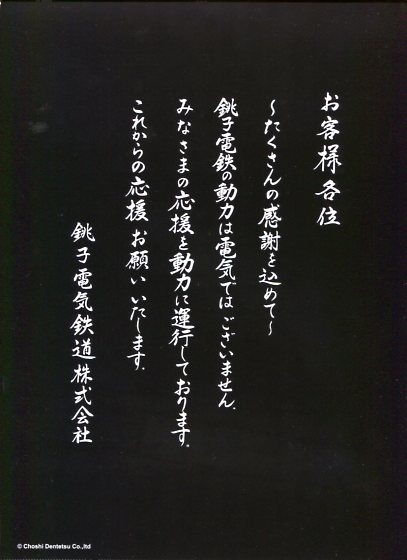| 平成26年(2014年)12月、銚子電鉄車両修理寄付お礼 |